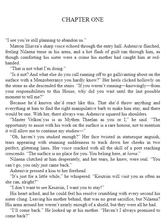 Ashenivir accompanies Rizeth to the surface on his ‘sabbatical’ trip, leaving behind the demands of his mother and the restrictions of the Arcanum. The two find themselves in Waterdeep, meeting new friends and old—friends with a better understanding of the dynamic between the two than most.